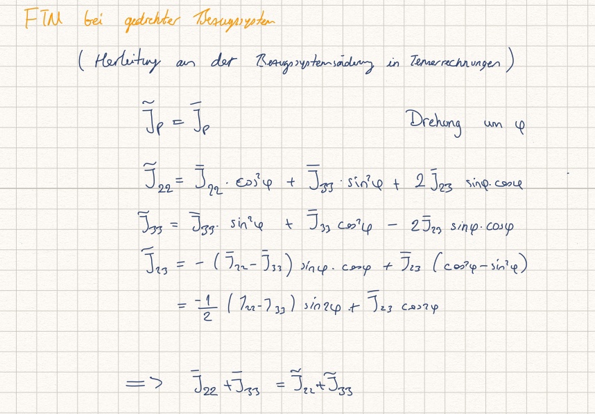 Bei dem Schwerpunktsystem können die Achsen gedreht werden. Die Berechnung der Trägheitsmomente bei gedrehten Achsen wird so berechnet: