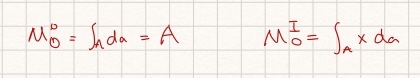 Die Flächenmomente 0. und 1. Grades treten schon bei der Berechnung der Flächenschwerpunkt auf.