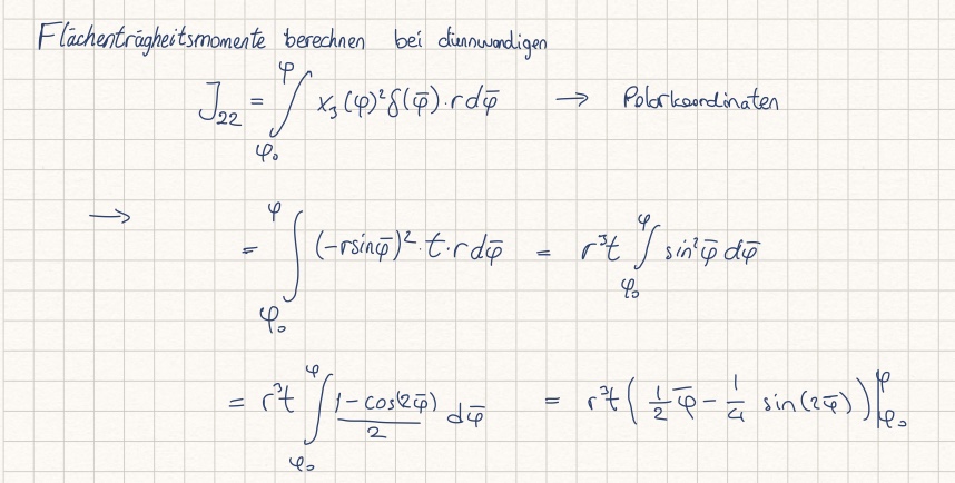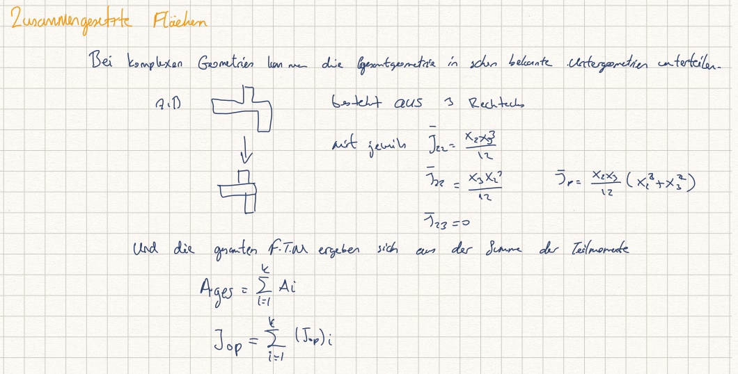 Die Flächenträgheitsmomente J_ij sind berechnet durch: