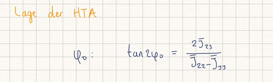 Wenn unsere Achsen bilden die Hauptträgheitsachsen, dann verschwinden die Deviationsmomente in der Fläche. Die Lage der HTA phi_0 kann wie folgende berechnet: