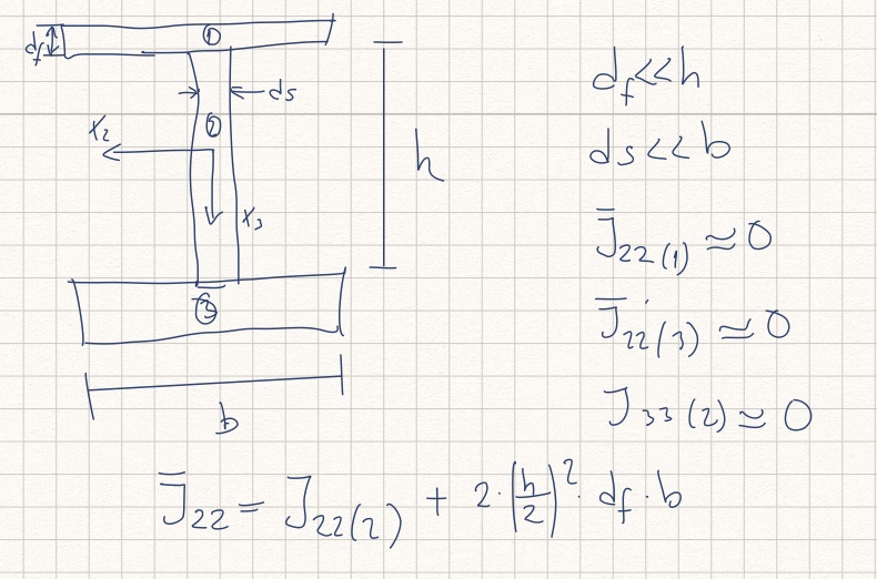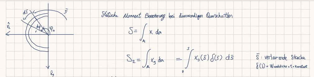 Bei dünnwandigen Flächen gilt für die Berechnung der statischen Momente und Flächenträgheitsmomente eine Vereinfachung.