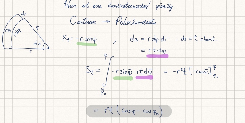 Das infinitesimale Flächenelement da wird in die Form der dünnwand gewandelt. Mit diesem Satz meine ich die folgenden: